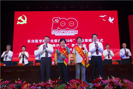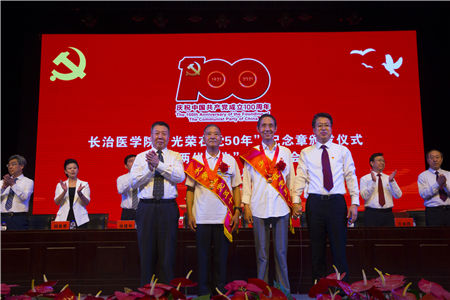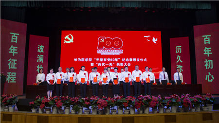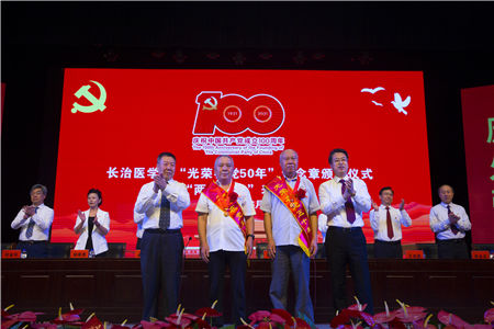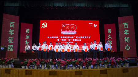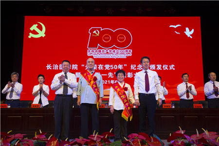党委书记李华荣同志代表校党委向矢志不渝跟党走,光荣在党50年,为党的教育事业、医疗卫生事业辛勤工作、无私奉献的老同志表示崇高的敬意,向受到表彰的先进集体和先进个人表示热烈的祝贺,向在各个岗位上为学校发展进步作出积极贡献的广大党员干部,致以节日的问候。他希望老同志们一如既往地关心长医工作,为长医全方位高质量发展建言献策,继续发挥好“传帮带”作用;希望受表彰的同志再接再厉,珍惜荣誉、发扬成绩,争取更大光荣;希望全校共产党员和师生员工崇尚先进、见贤思齐,紧密团结在以习近平同志为核心的党中央周围,不忘初心、牢记使命,奋力书写长医高质量发展、服务山西转型发展蹚新路的新篇章。