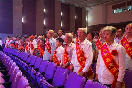 光荣在党50年老党员代表王增先代表荣获“光荣在党50年”纪念章的60多名老党员,向党中央表示崇高的敬意和由衷的感谢。他深情回顾了入党75年来,亲眼见证了中国共产党为中国人民谋幸福,为中华民族谋复兴,团结带领全体中国人民进行不屈不挠的英勇斗争,始终站在斗争的最前沿,实现了中华民族从站起来、富起来到强起来的伟大飞跃。最后用“丹青不知老将至,老树红花放异彩,苍龙日暮还行雨,余热生辉献二春,融入集体情趣浓,力求一片夕阳红”表达了老党员同志们的心愿。