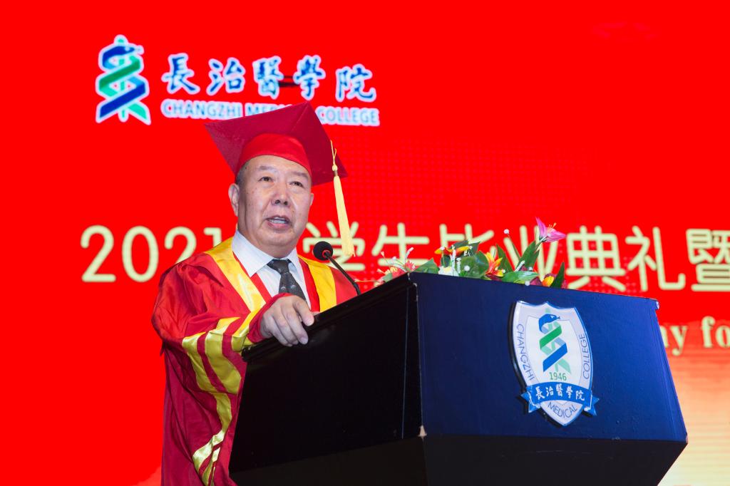 岁月不居,时节如流,蓦然回首,已是匆匆数年。同学们在母校的四年、五年学习生活,历经了长医“三大精神”的洗礼与熏陶,目睹了老校区改造、新校区立项和五龙校区启用,赢得了中国大学生医学技术技能大赛上的光彩与荣耀……作为母校发展和建设的参与者、见证者,你们和全校万余名师生员工一起,共同推动了长治医学院办学水平和人才培养质量的稳步提升,翻开了学校改革与发展建设的新篇章。天道酬勤,你们中有470位同学考取了硕士研究生,23人次获得国家奖学金,287人次获得国家励志奖学金。与这些成绩相比,让老师们更为欣慰的是,在去年惊心动魄的抗击新冠肺炎“战疫”中,你们与全国人民一起守望相助、共克时艰,经受住了疫情带来的冲击和考验,见证了医务工作者白衣为甲、逆行出征的英勇与无畏,领悟了中国共产党人民至上、生命至上的立场与情怀,感受了中国速度、中国效率、中国精神和中国力量,在更加坚定“四个自信”的同时,深刻理解了作为一名医学生的责任与担当。你们中有347人作为志愿者积极投身到社区和学校的疫情防控,有6名同学被授予“见义勇为先进分子”,171名同学获得“优秀毕业生”荣誉称号,556名同学光荣地加入了中国共产党。虽然,你们每个人的成长轨迹不尽相同,但今天在场的每一位同学都在长医实现了华丽的转身,创造了一份真正属于自己的“王者荣耀”,母校记录了你们奋进中的每一个足迹,见证了你们成长的点点滴滴,你们是长治医学院永恒的记忆和永远的骄傲!