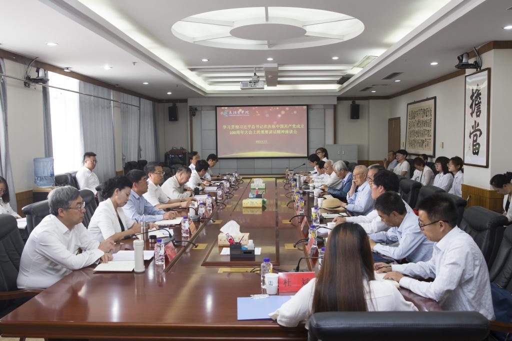 7月2日上午,我校在科技楼11层会议室召开了“学习贯彻习近平总书记在庆祝中国共产党成立100周年大会上的重要讲话精神”座谈会。学校党政班子成员,离退休党员、教工党员、学生党员代表和群众代表参加了本次座谈会。座谈会由党委书记李华荣主持。