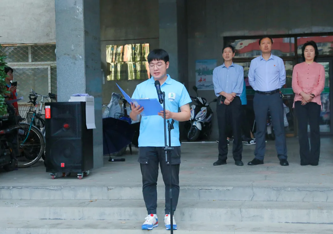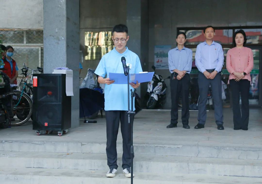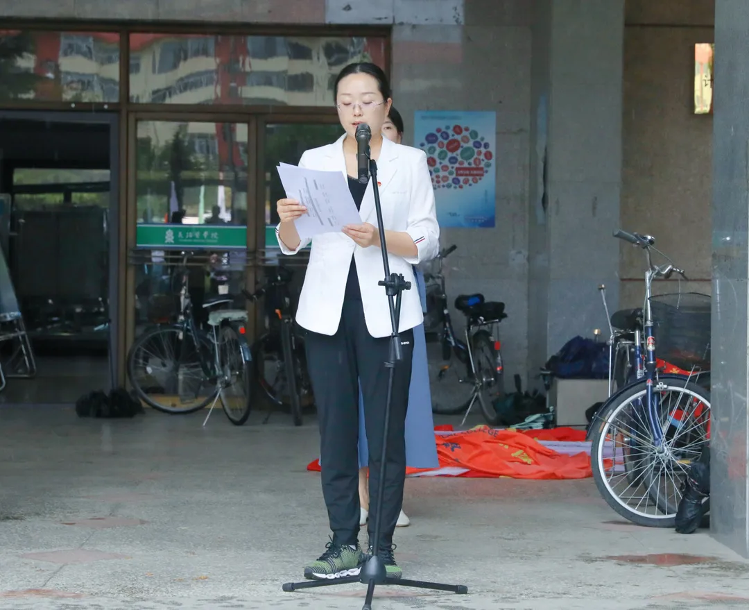 与会领导为各实践队代表授旗,志愿者学生代表朴惠泽带领全体社会实践队员进行集体宣誓。宋晓亮宣布长治医学院2021年大学生暑期“三下乡”社会实践队出征。