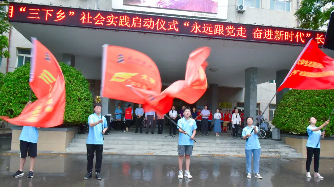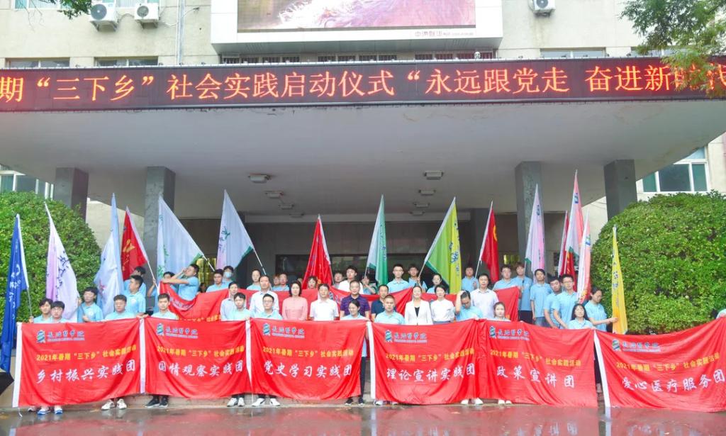 为深入学习宣传贯彻习近平新时代中国特色社会主义思想,贯彻落实习近平总书记关于青年工作的重要思想,7月11日上午,以“永远跟党走 奋进新时代”为主题的2021年暑期“三下乡”社会实践活动启动仪式在校本部主楼前举行。