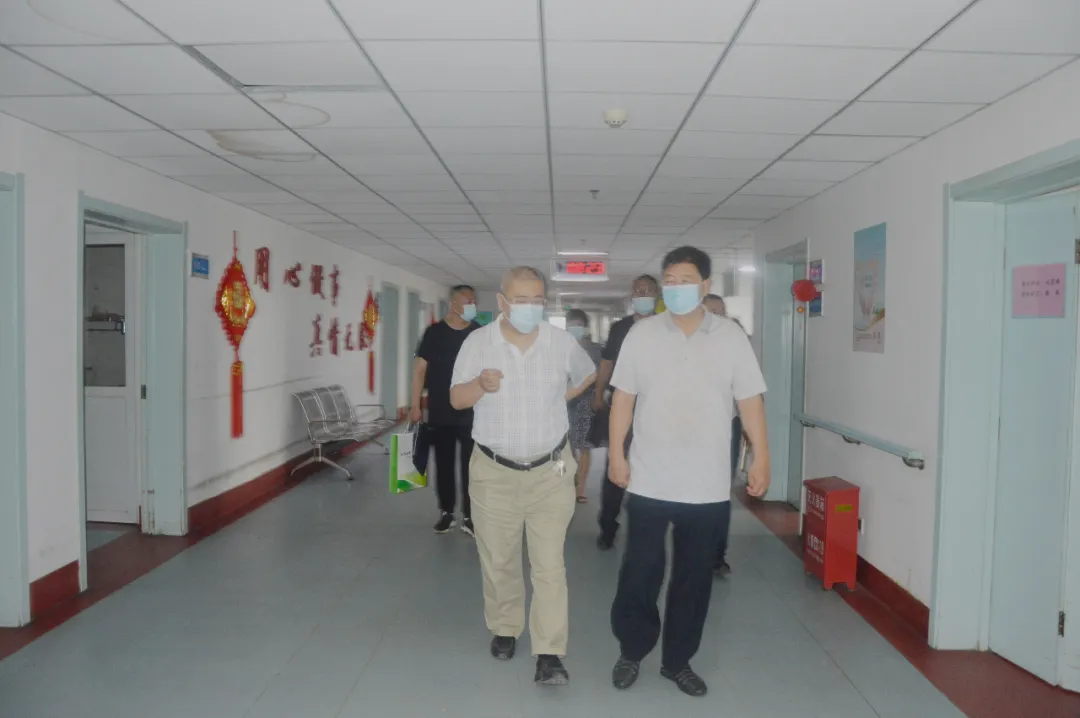 7月7日,省老龄事业发展中心主任张林森、副主任郝文杰、科长宁建峰,市卫健委四级调研员贾长青,市康养服务中心主任李俊一行5人到附属惠丰医院调研指导医养结合工作。