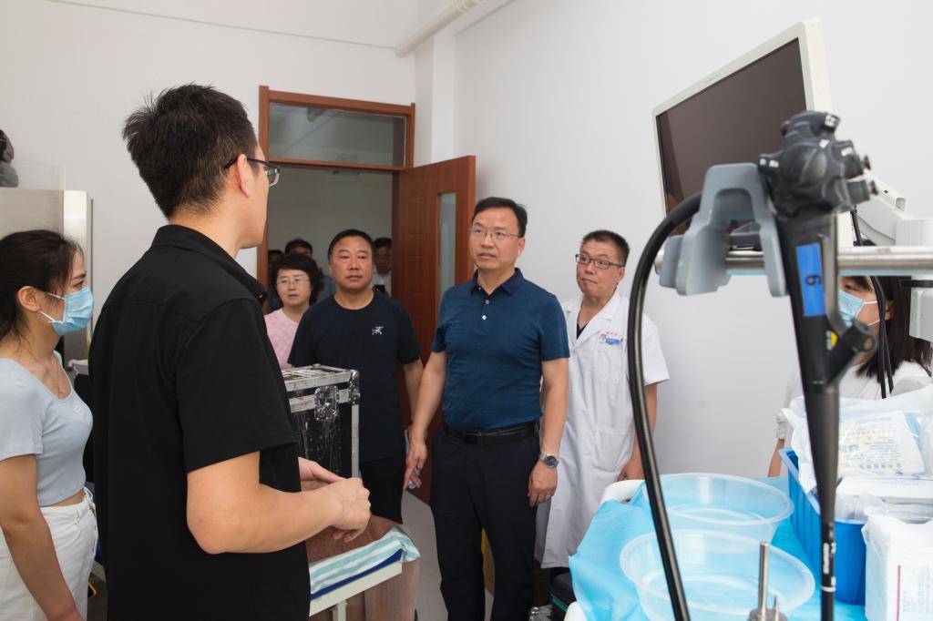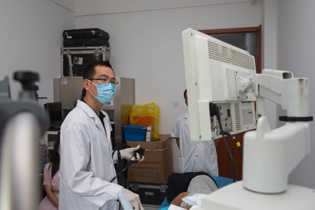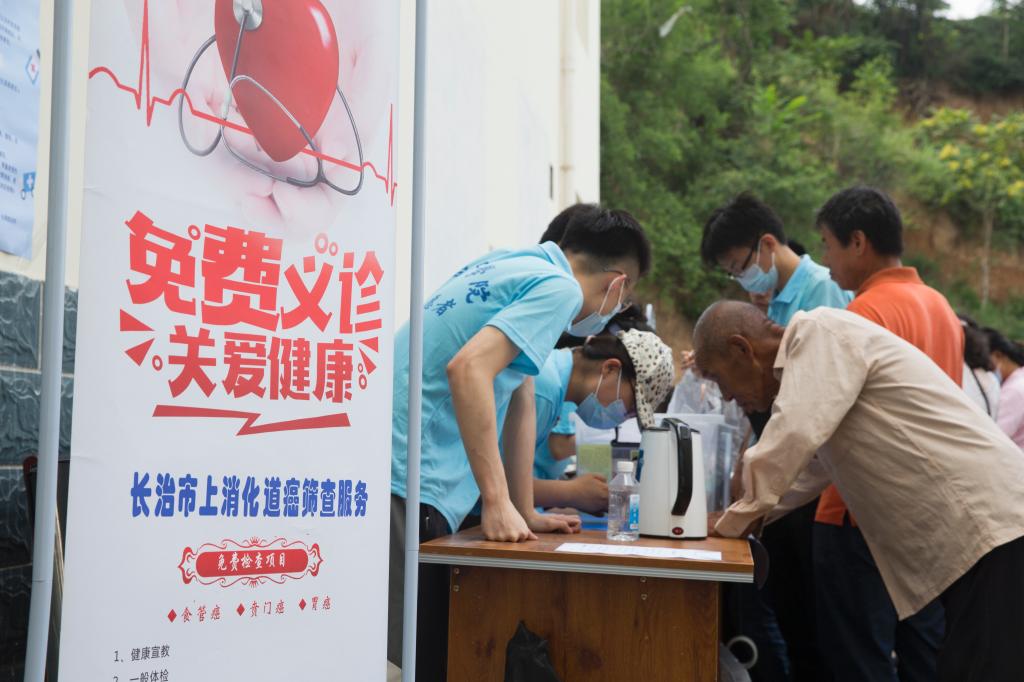 启动仪式结束后,项目组分头开始工作,由来自学校暑期三下乡“乡村振兴实践团”的12名本科生、研究生志愿者组成的“流调小组”,在现场群众中进行流行病学调查,同时,他们将进驻30个行政村,集中开展入户流调、健康教育等工作;由附属医院消化道专家组成的“筛查小组”,为村民做胃镜检查,筛查小组利用双休日将对石城镇5600余名40至70岁村民全部进行胃镜筛查;由我校预防教师和“第一村医”组成的“宣教小组”,发放宣传资料开展上消化道癌防治知识宣教,现场对30多名乡村医生进行了消化道疾病防治专题培训。
