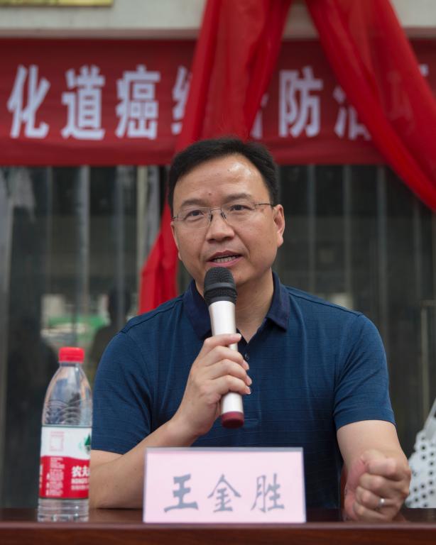 王金胜在讲话中围绕当地上消化道癌“两高”“两低”的特点,详细地介绍了项目启动实施的意义和价值、方法和路径。他强调,要充分利用学校团队、技术及资源优势,整合石城镇中心卫生院及石城镇所属30余个行政村的力量,构建起坚实的上消化道癌综合防治网络;要聚焦当地40至70岁的上消化道癌高危人群,在5到10年的时间内扎实认真地做好健康宣教、流行病学调查、临床医学检查,早发现、早诊断、早治疗,切实降低上消化道癌的发病率,以实现好“发现一个早癌,挽救一条生命,幸福一个家庭”的目标;要切实做好当地乡村医生的培训提高工作,不断增进当地百姓的健康素养和对上消化道癌的认知水平。他要求,项目组成员要牢记使命,克服困难,认真履责,高质量、高标准地完成好项目锚定的各项目标任务。他同时希望当地政府能够为目标任务的早日达成给予及时必要协助。