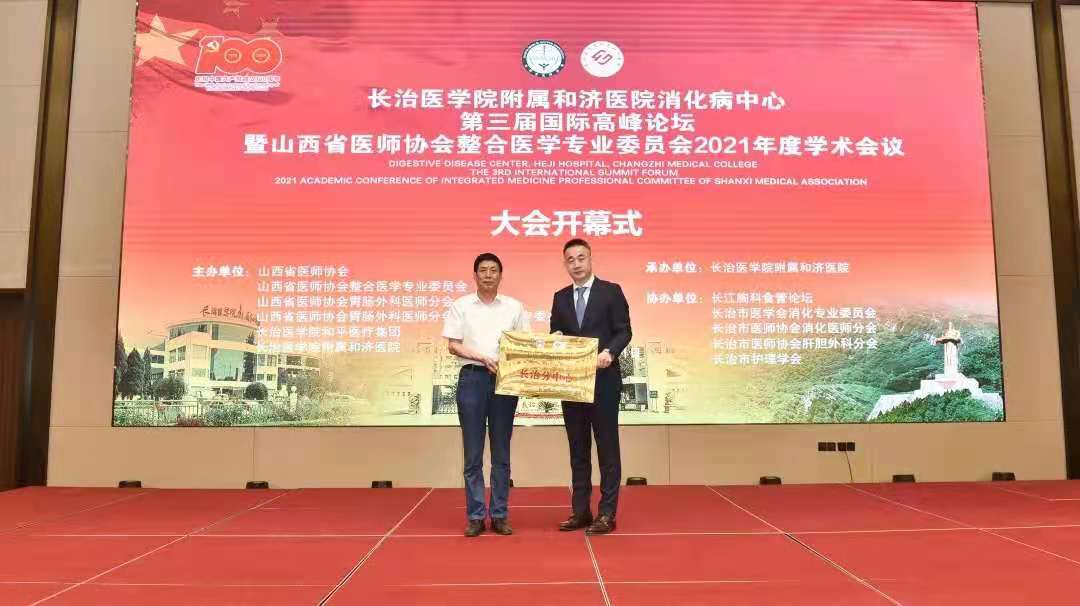 7月31日,长治医学院附属和济医院消化病中心第三届国际高峰论坛暨山西省医师协会整合医学专业委员会2021年度会议开幕。长治医学院副校长宋晓亮,上海市胸科医院胸外科副主任、食管外科主任李志刚,山西省肿瘤医院消化内镜微创外科中心主任董剑宏,长治医学院和平医疗集团理事长、附属和平医院党委书记尚进平,和平医疗集团副理事长、附属和济医院党委书记费丽萍,附属和济医院院长郝少峰,附属和平医院副院长连长红,长治市卫健委医政医管科科长吴军出席会议。开幕式由山西省医师协会整合医学专业委员会主任委员、附属和济医院党委副书记、副院长王培龙主持。
