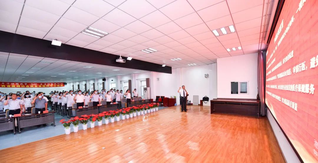 在场全体医师重温《中国医师宣言》,一句句誓言铿锵有力,是医者对全社会、对患者们的庄严承诺。