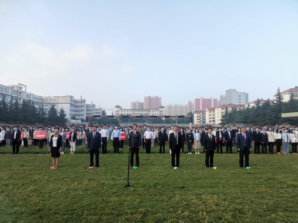 8月30日,新学期开学第一天清晨,我校于校本部体育场举行了隆重庄严的升国旗仪式。党委书记李华荣在升旗仪式上讲话,校长王金胜主持仪式;学校党政领导、各二级单位和部门负责人、附属和平医院及附属和济医院领导班子成员、各院(系、部)科级以上干部、全体辅导员、校本部在校全体本科学生和临床医学硕士专业学位研究生参加了升国旗仪式。
