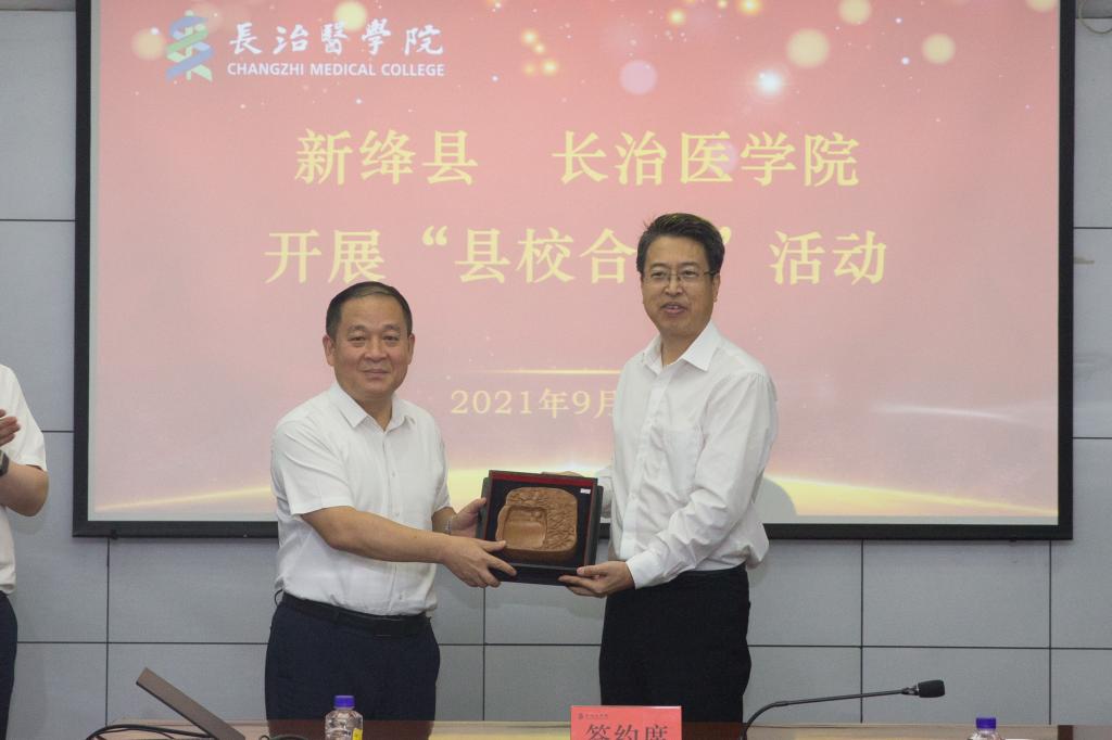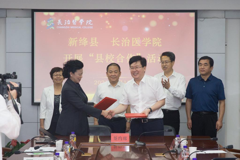 在大家的见证下,胡春香与杨瑞林分别代表双方签署了《中共新绛县委、新绛县人民政府与长治医学院深化县校合作协议》。