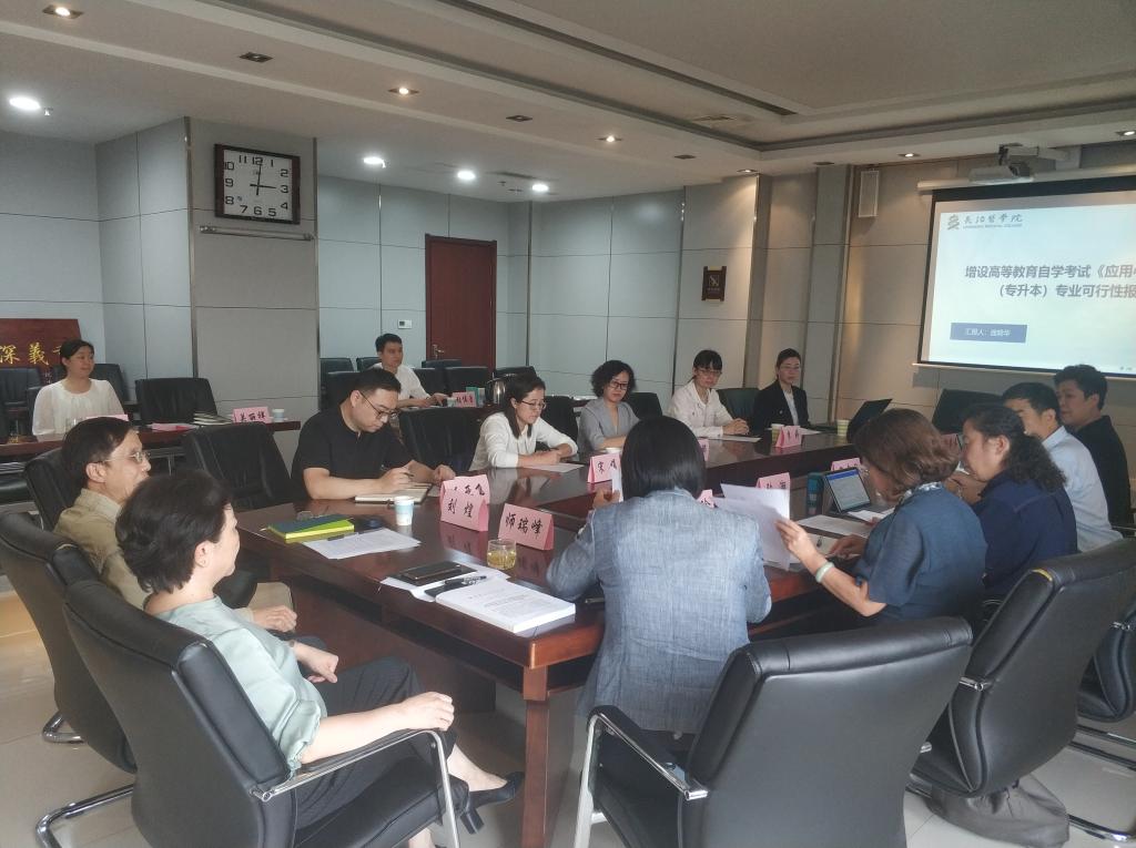 韩中文就本次论证会的基本情况及参会人员作了介绍。来丽娜对我校申报《应用心理学》(专升本)自考专业的背景进行了阐述。庞晓华从增设理由和基础、专业人才培养方案、专业带头人等方面就增设高等教育自学考试《应用心理学》(专升本)专业的可行性进行了全面、详细的报告。