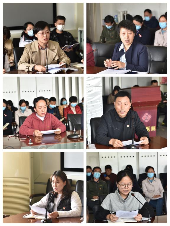 党支部书记代表石云、临床科室负责人代表李会琳、职能科室负责人代表王珮瑄、职工党员代表张安书、第二临床学院党支部书记代表马学增、学生代表牛欢,围绕党史学习教育进展情况,就如何开展理论学习和“我为群众办实事实践活动”交流发言。