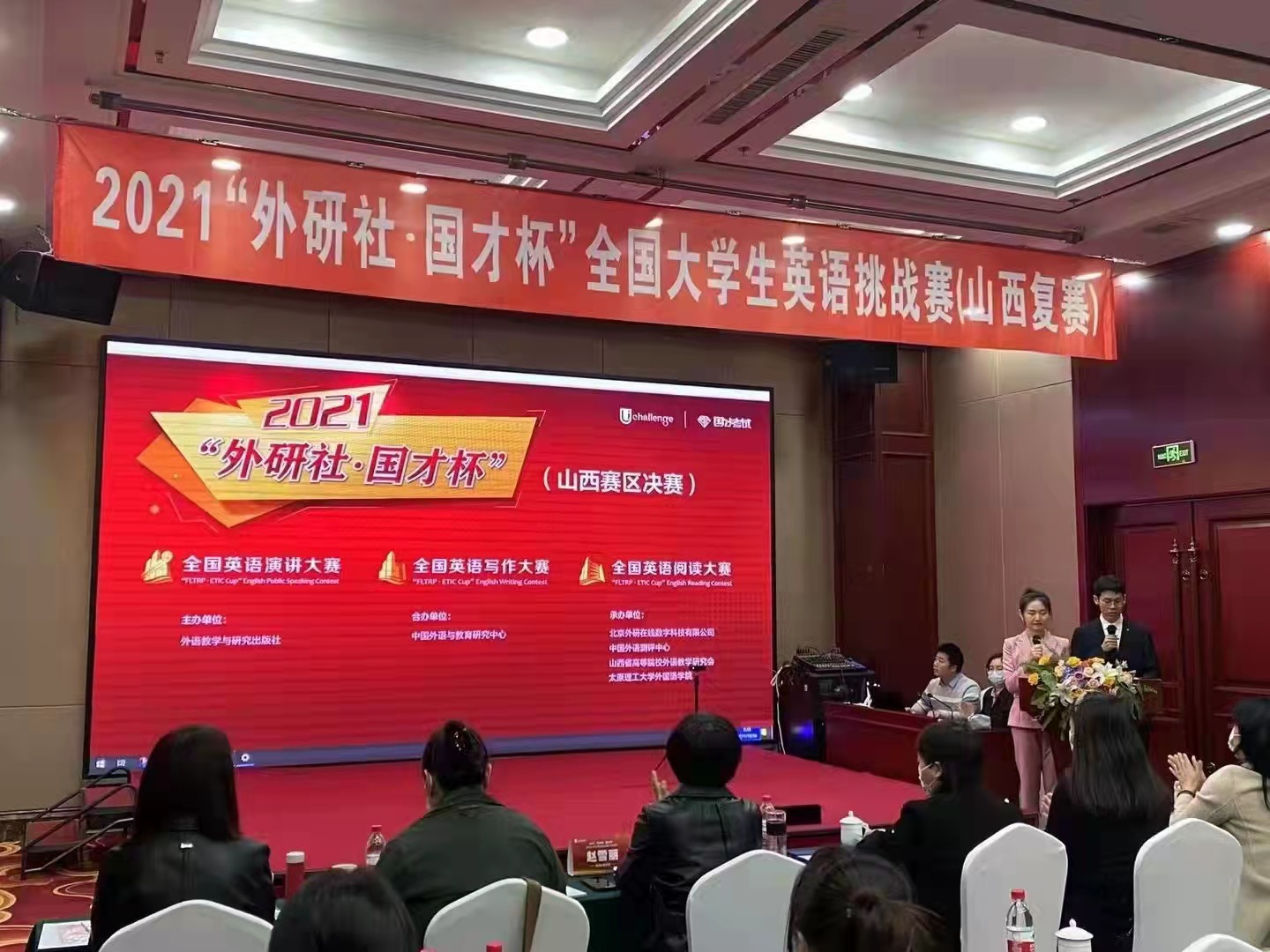 本届山西赛区复赛由太原理工大学承办,受疫情影响,三赛均采取线上方式进行。在汇聚了全省高校150多名优秀选手的角逐中,我校由王育红老师指导的王砚同学获得了本届写作大赛的一等奖、贾妍曦同学获得三等奖;在阅读比赛中,王育红老师指导的毕语格同学、常朝霞老师指导的韩志冰同学获得三等奖;在演讲比赛中,常朝霞老师指导的毕格越同学获得三等奖。