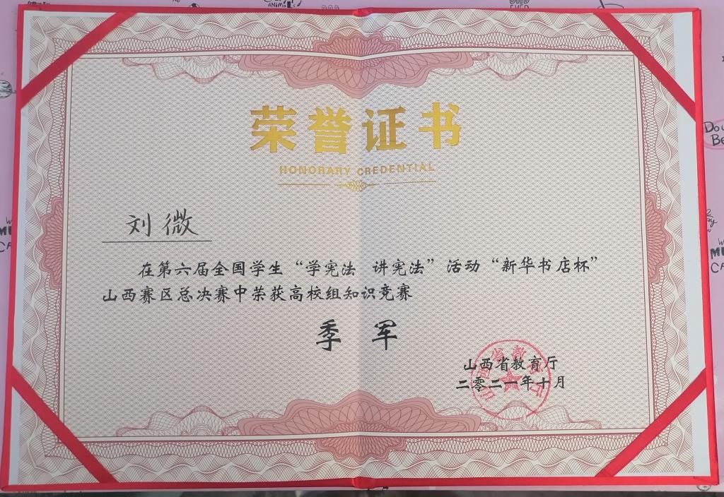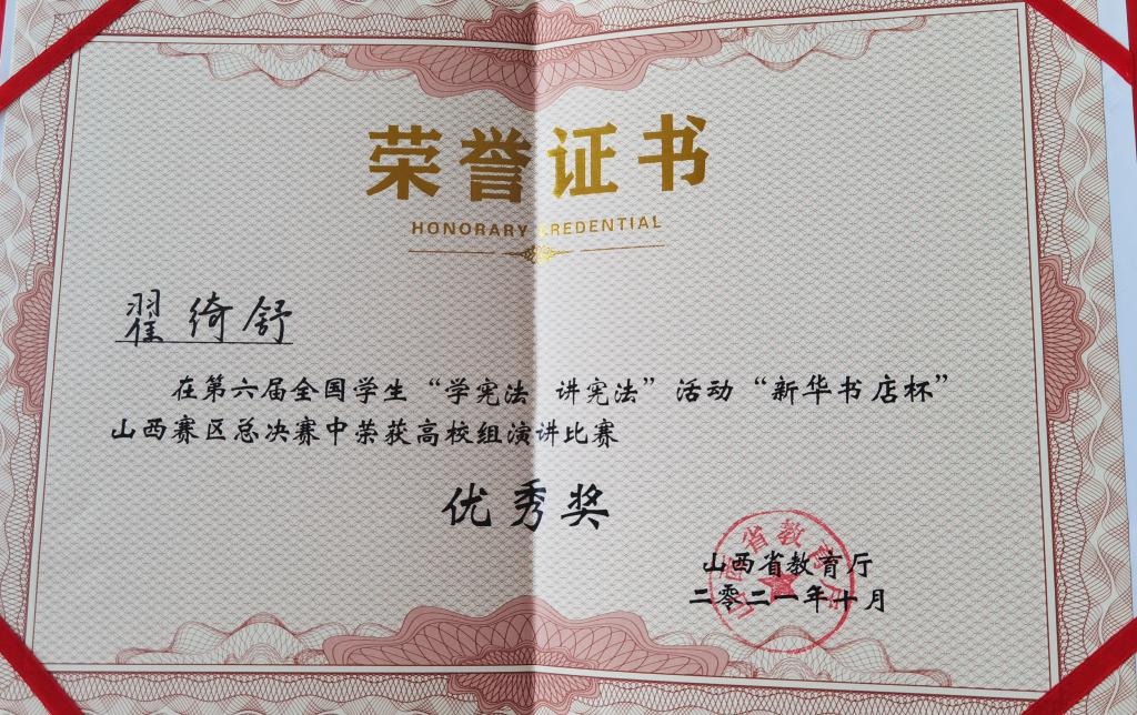 10月15日,第六届全国学生“学宪法 讲宪法”活动“新华书店杯”山西赛区总决赛落下帷幕,我校获季军1项、优秀奖1项。