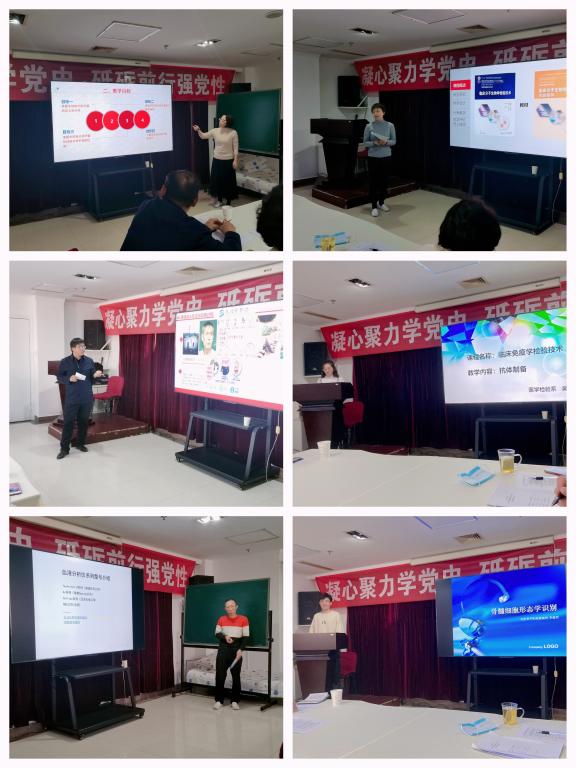 经过教研室的推荐、选拔,最终由来自临床生化、基础、血液、免疫以及微生物检验教研室的6名教师参加了比赛,各位教师从课程思政教学设计和说课示范等方面进行了充分展示,评委老师针对课程思政体系化设计、融入点、融入方法、设计规范、教学实施以及教师素养等对参赛教师进行了点评。经过激烈角逐,微生物检验教研室申芳芳讲授的《非结核分枝杆菌》获一等奖,生化检验教研室马良讲授的《荧光定量PCR的数据解读》和免疫检验教研室赵鑫讲授的《获得性免疫缺陷综合征的免疫学检测》获二等奖,免疫检验教研室吴佳讲授的《抗体制备》、基础检验教研室王东红讲授的《VCS技术》、血液教研室李豪哲讲授的《骨髓细胞形态学识别》获三等奖。