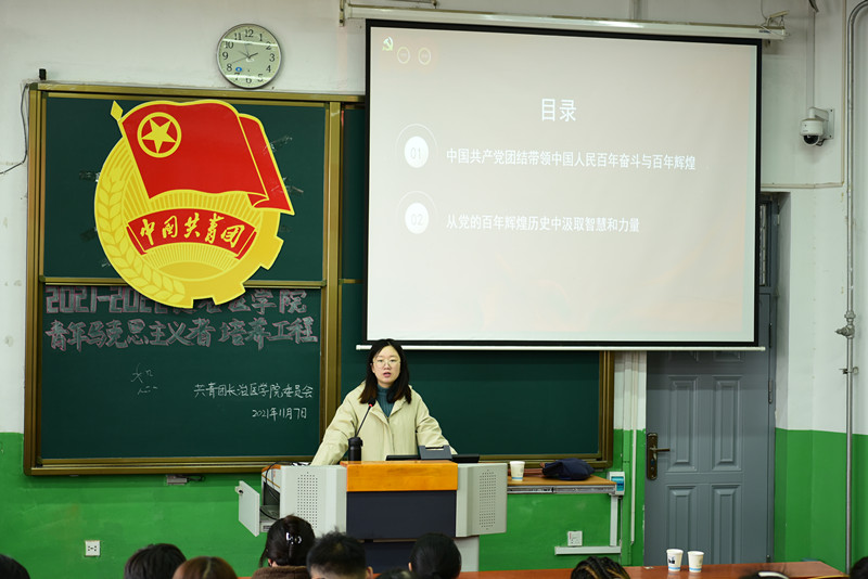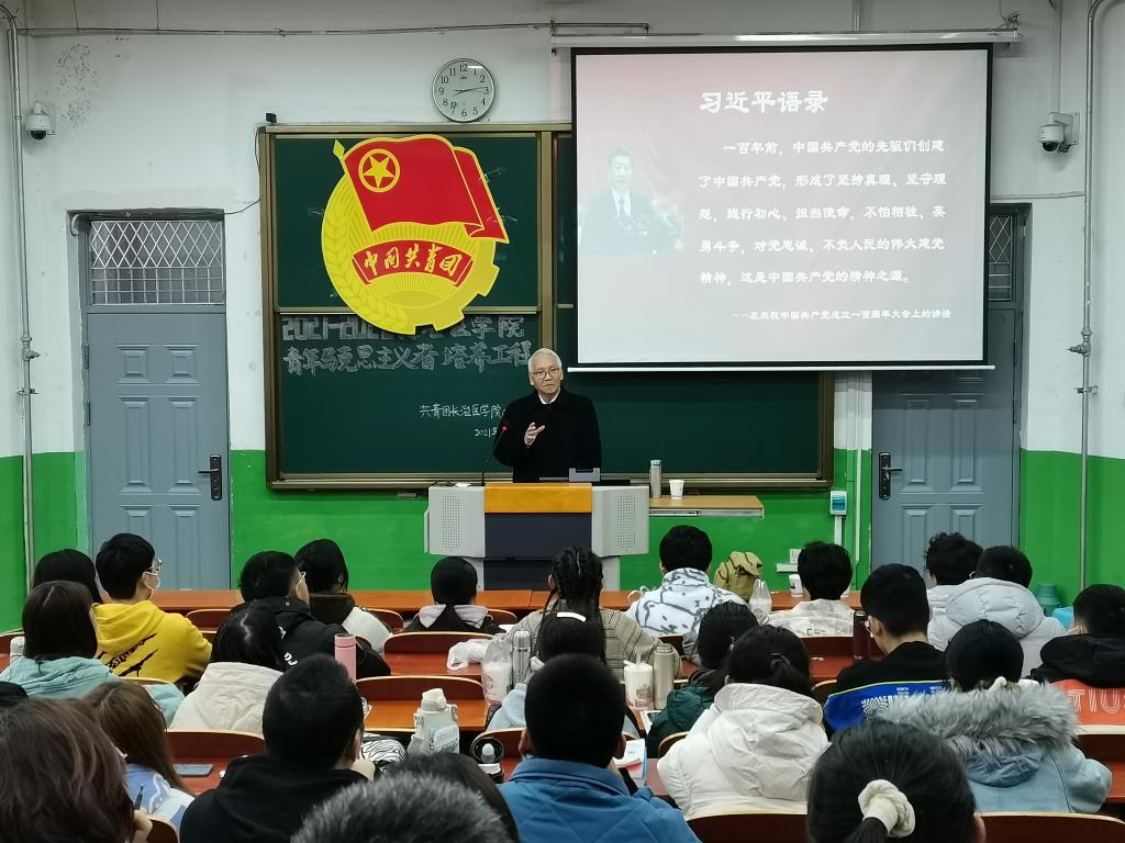 为进一步培养青年骨干,引导大家弘扬伟大建党精神、赓续红色血脉,以实现中华民族伟大复兴为己任,不负时代,不负韶华,不负党和人民的殷切期望。11月7日上午,校团委邀请学校原党委副书记、校关工委常务副主任王新才教授,思政部教师郭娟娟作“青马工程”主题讲座。100余名“青马”学员到场聆听讲座,讲座由校团委副书记连静主持。