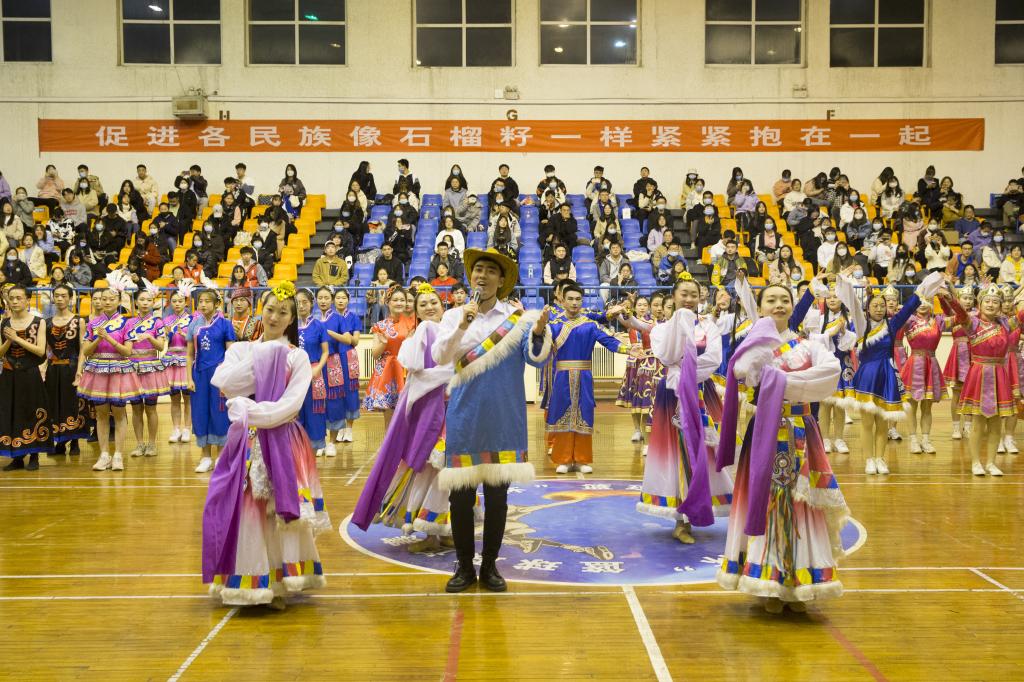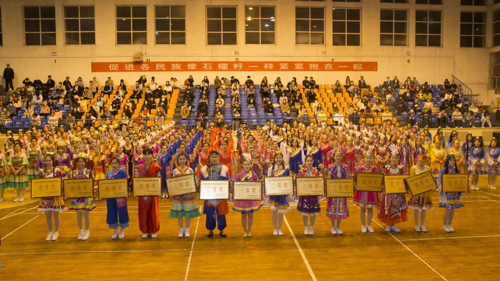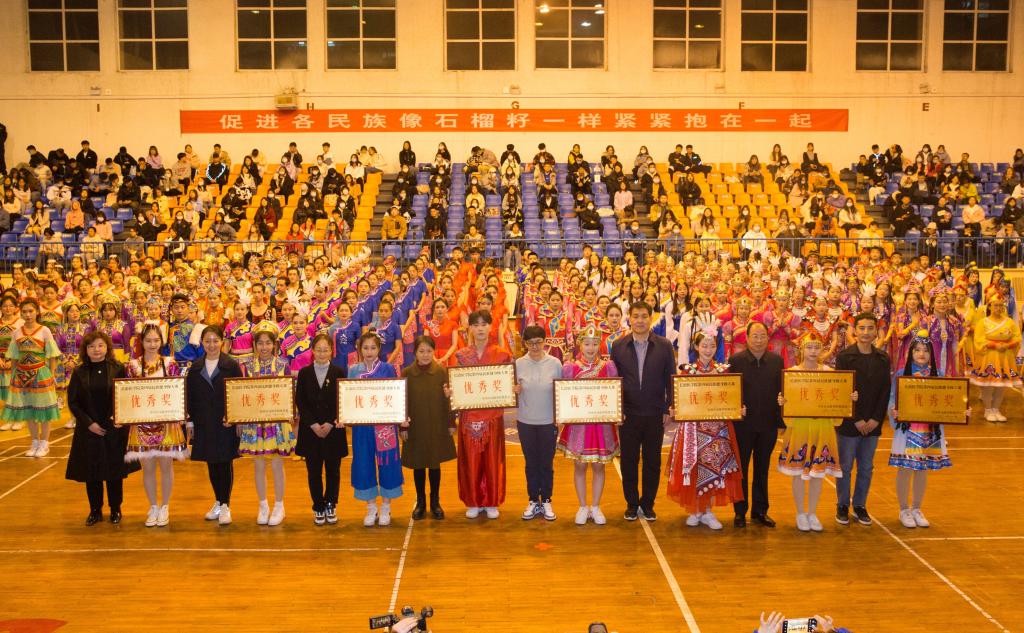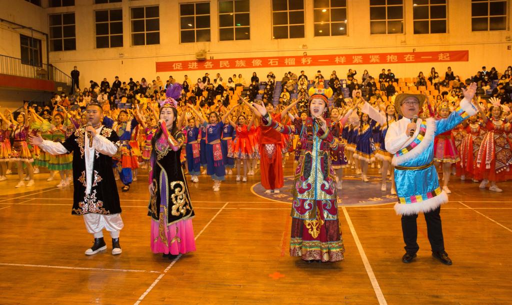 压轴出场的是我校人文艺术传媒系的老师带来的四人联唱《幸福中国一起走》,在百人簇拥的团结花中绽放着和谐美丽的光彩,展现了我校各族师生爱党、爱国、爱社会主义的真挚情感和中华民族一家亲、同心共筑中国梦的共同愿景,赢得了现场观众的阵阵掌声,为这场民族体育盛宴画上了圆满句号。