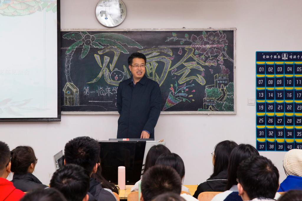 为进一步增强学生的爱国主义精神,传承中华民族悠久历史和灿烂文化,更好落实立德树人根本任务,11月2日下午,校党委书记李华荣教授在北区46教与所联系班级第一临床学院临床医学2107班同学们举行见面会,见面会由辅导员贾艳燕老师主持。