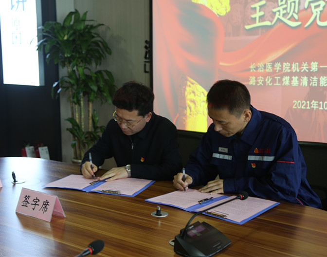 第一党支部与潞安化工集团煤基清洁能源有限责任公司加工党支部召开座谈会,分享支部建设经验。双方均表示,党支部结对共建是贯彻落实新时代党的建设总要求,做好新时期党建工作的具体举措,推动党支部互建促自建,进一步提升基层党组织和党员服务群众能力,实现互学互促、共同发展。在双方共同见证下,王黎刚与公司加工党支部书记屈胖则签署了支部共建协议。
