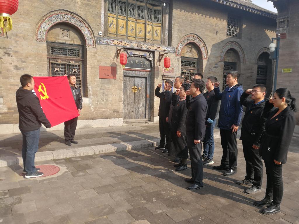 面对鲜红的党旗,王黎刚同志带领全体党员,重温了入党誓词,从太行精神中感悟初心使命,践行建党精神,汲取奋斗力量。