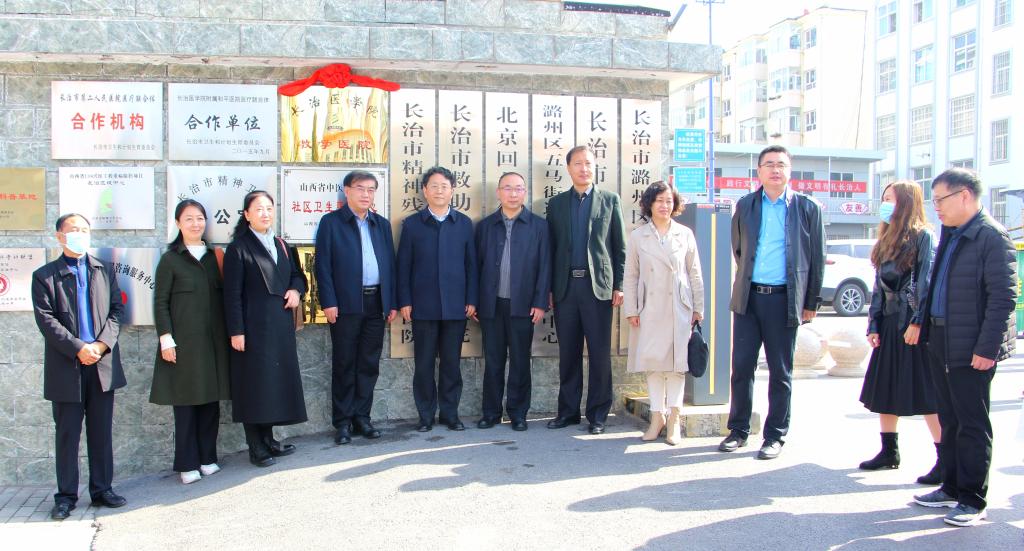 签约仪式结束后,崔旭斌与宋晓亮为长治市精神卫生中心暨长治医学院教学医院揭牌。