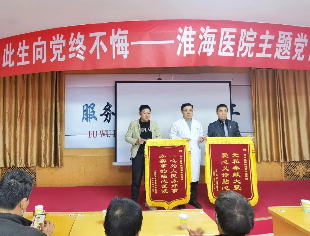 活动中,平顺县人大常委、“太行人家”岳家寨悬崖居民宿负责人王世斌和平顺县石城镇岳家寨村党支部书记岳青秀分别向淮海医院赠送锦旗,对医院为岳晚增老人及岳家寨全体党员体检所做的精心安排和周到部署表示衷心感谢。