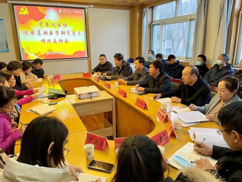 基础医学部党总支书记梁建君、医学影像学系党总支副书记崔海霞分别代表总支领导班子作了表态发言,他们认为党委巡察组反馈的问题客观、深刻、全面,提出的整改意见建议指导性、针对性强。表示对反馈的问题诚恳接受、照单全收,将深刻剖析根源、开展集中整改,把巡视整改作为重大政治任务,不折不扣抓好落实,切实把整改成效转化到增强党性、提高能力、推动工作上。
