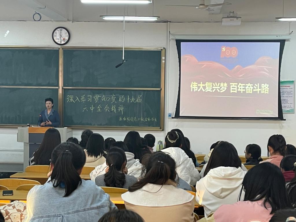 为深入学习贯彻党的十九届六中全会精神及习近平总书记“七一”重要讲话精神,党委常委、副校长胡春香于11月17日下午在五龙校区22教室讲授了以“伟大复兴梦 领航新征程 做堪当民族复兴大任时代新人”为主题的党史教育专题党课。医学检验学系2021级辅导员张泽宇及107名同学参加学习。