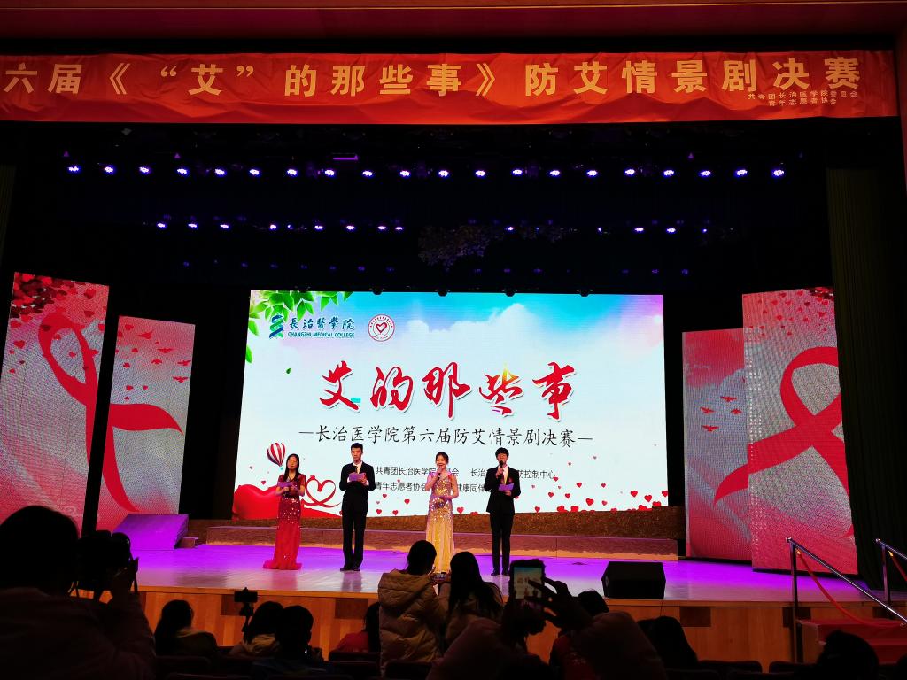 为深入宣传健康中国理念,普及艾滋病防治知识,提高大学生自我保护意识,促进大学生健康成长,11月21日晚,校团委联合长治市疾病预防控制中心在我校科学会堂举办了第六届《“艾”的那些事》防艾情景剧大赛决赛。长治市疾病预防控制中心性病艾滋病防治科科长申玉丽,长治市妇幼保健院药具科科长平慧渊;我校人文艺术传媒系党总支副书记司志强,校团委副书记连静、张丽娜,校团委教师张潇颖担任评委。