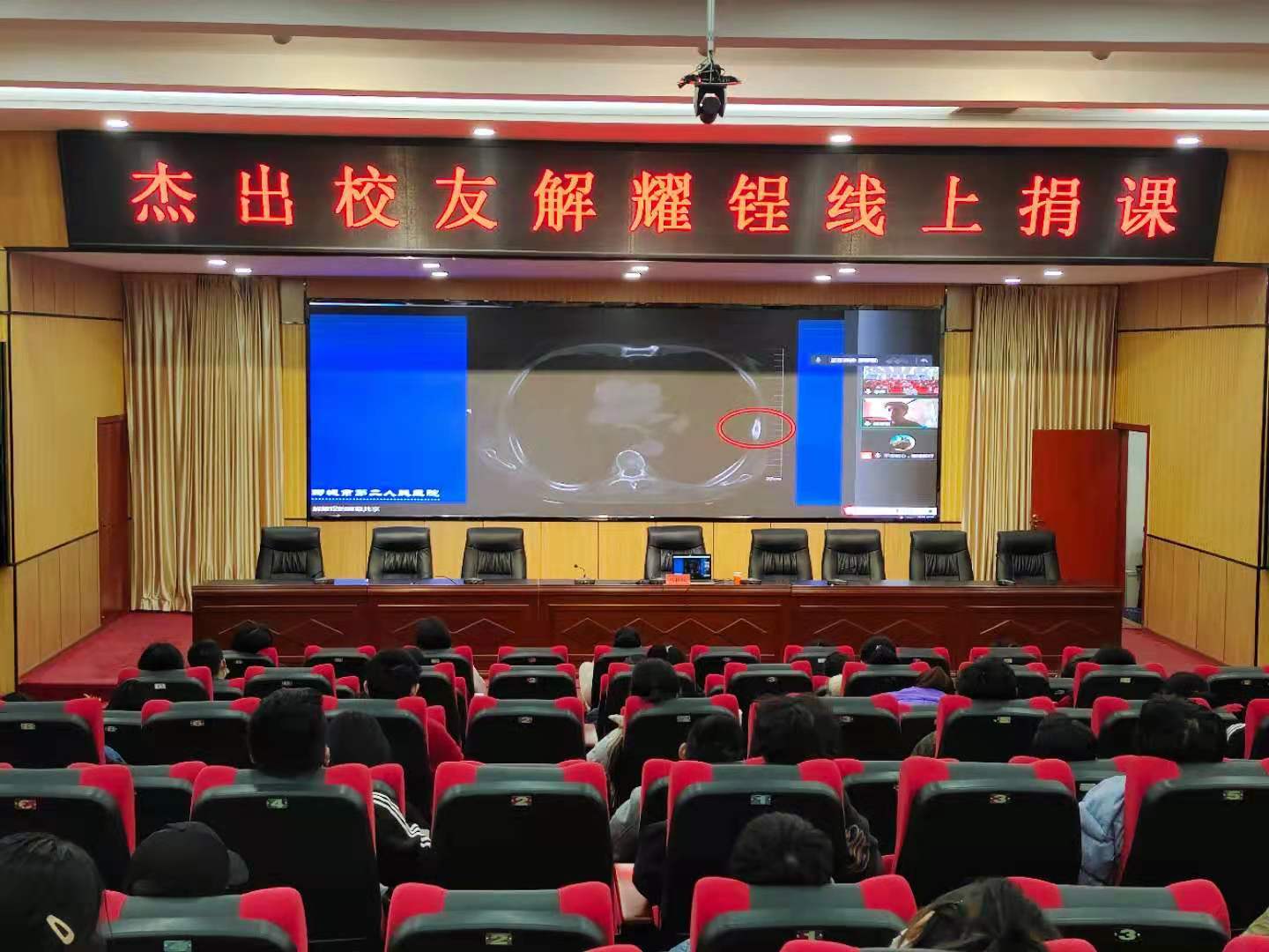 12月4日上午,我校在临床技能中心学术报告厅举办了线上“杰出校友捐课”活动。2000届毕业校友、聊城市第二人民医院早期肺癌筛查科主任解耀锃应邀作“肺结核亚专业创新之路”线上讲座。讲座由党委(学院)办公室副主任吕秋林主持,近200名师生到场聆听。