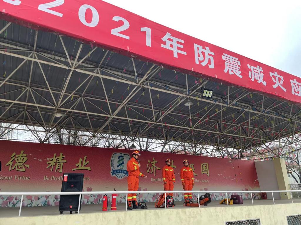 消防救援队员为参演师生讲解了避震逃生技巧、消防安全知识,演示了灭火器和相关消防器材的使用方法。