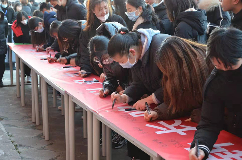 全体师生纷纷在条幅上签下名字,深切表达对遇难同胞的哀悼,纷纷表示会努力成为对国家、社会有用的人才,为祖国的繁荣昌盛添砖加瓦。