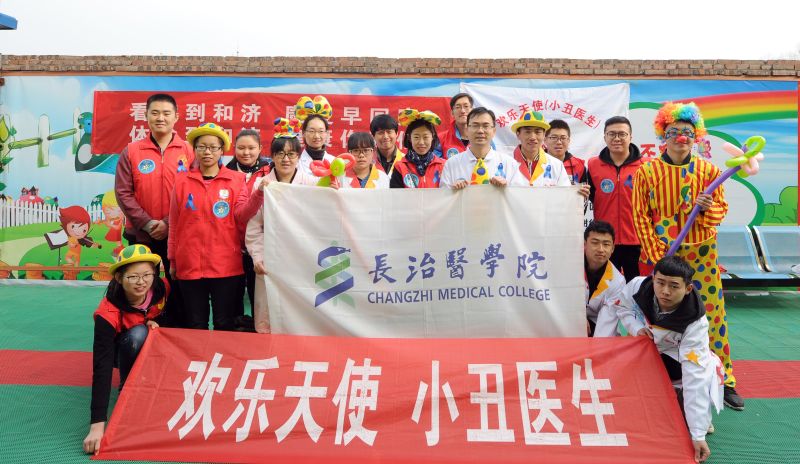 我校青年志愿者们每年定期在附属和平医院、附属和济医院、长治市残疾人康复中心、学校帮扶村等地开展“欢乐天使,小丑医生”志愿服务。慰问、义诊、扶贫,小丑医生们活跃在不同的场所,总会在人民群众最需要的地方出现。听诊器变成了话筒,针头变成了小动物,小丑医生们用自己的方式为大家带来欢乐,缓解病痛。同时小丑医生还帮助医务工作者跟踪、观察患者的病情发展,引导大家珍爱生命、热爱生活,积极配合治疗。