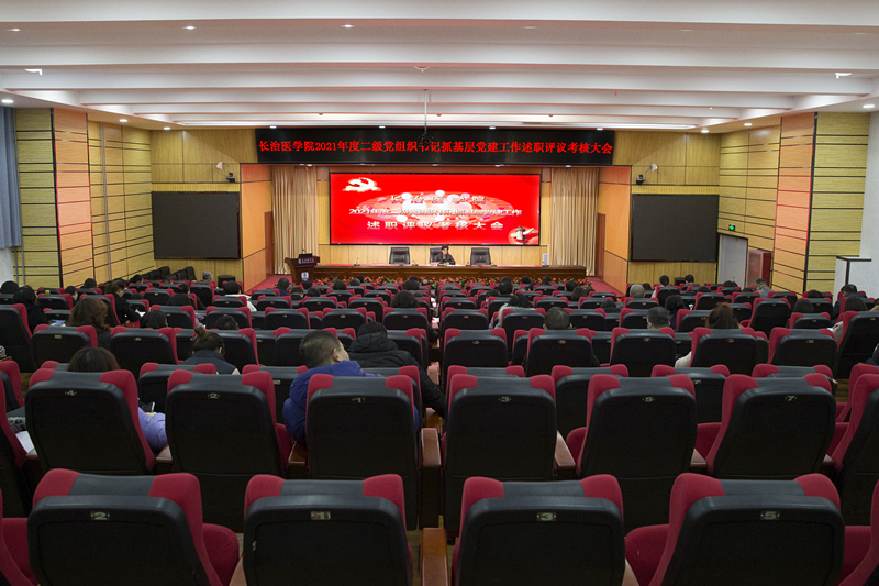 为进一步贯彻落实习近平新时代中国特色社会主义思想,检验一年来基层党建工作成果,推动全面从严治党向基层延伸,按照校党委《关于做好2021年度党组织书记抓基层党建述职评议、党支部书记“双述双评”及支部考核工作的通知》文件安排,12月21日,我校在临床技能中心学术报告厅召开了2021年度二级党组织书记抓基层党建工作述职评议考核大会。学校党政领导、各二级党组织书记、党务部门负责人、各院系主任以及“两代表一委员”和教职工代表共计100余人参会。会议由党委副书记张芳萍主持。