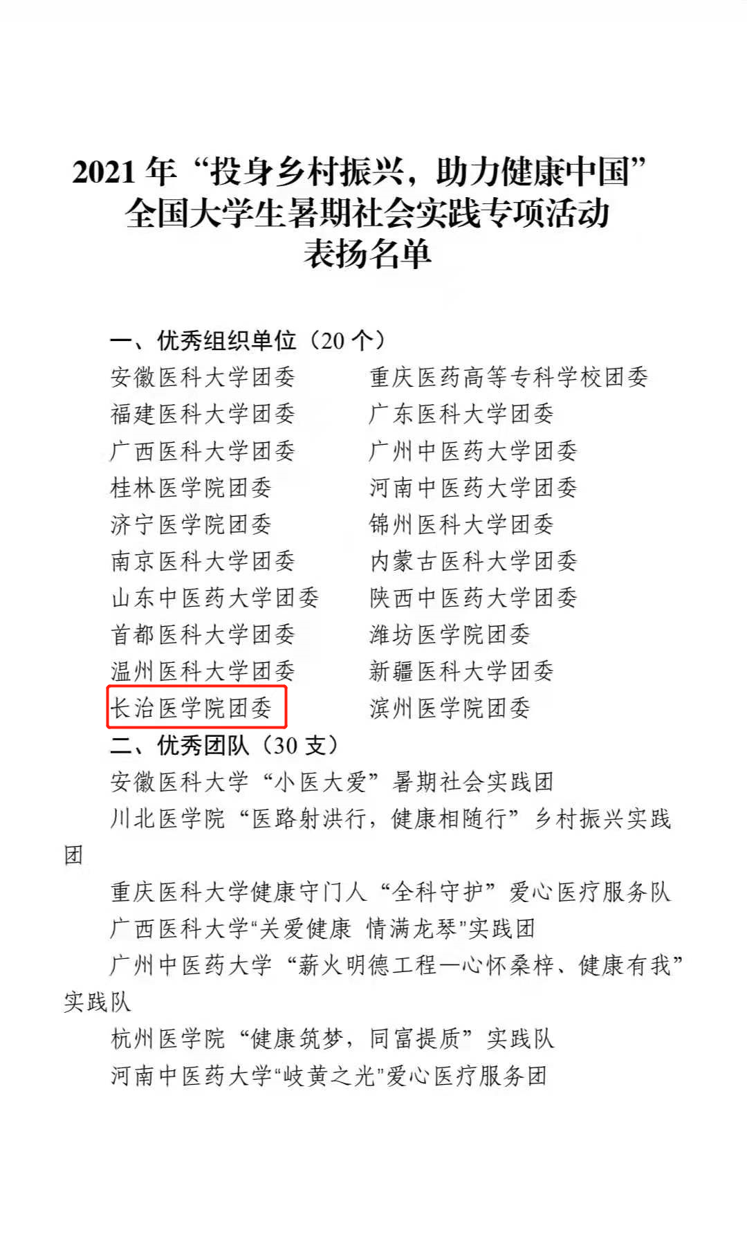 【长医喜讯】我校2021年暑期“三下乡”