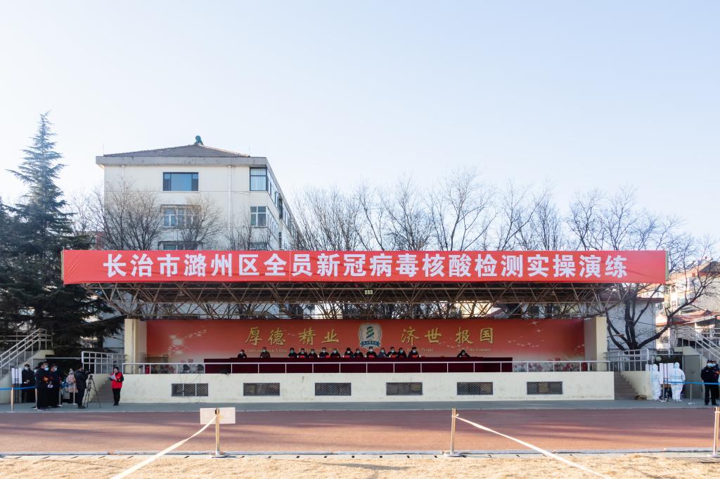 为切实保障全体师生生命安全和身体健康,全面提升应对新冠肺炎疫情核酸应急检测能力,做好常态化防控下全员核酸检测应急准备工作。12月21日下午,我校与潞州区在学校南区体育场上联合开展了全员核酸检测标本采集应急演练。学校副校长李长江、潞州区政府副区长李国亮、长治市人民医院副院长王晚萍等现场观摩。