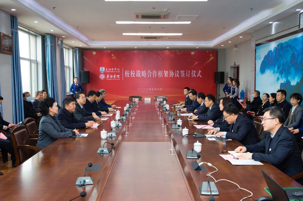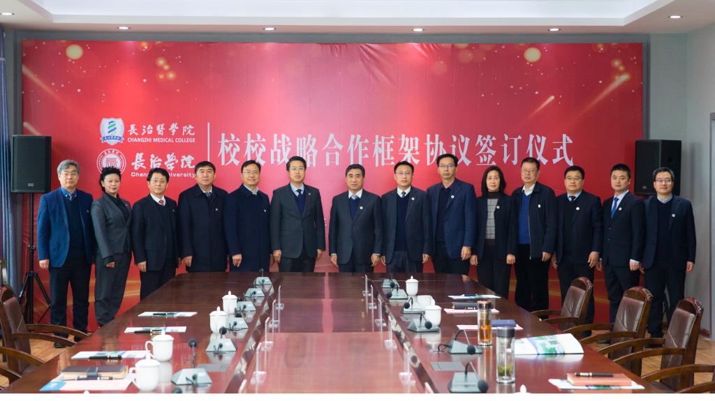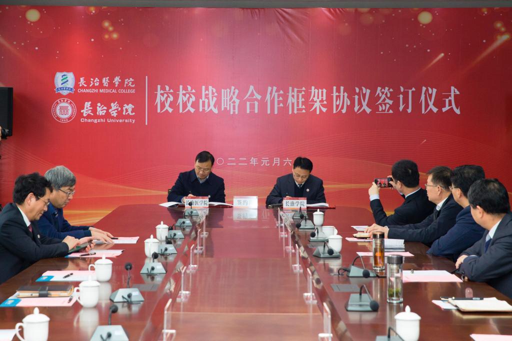 1月6日下午,长治医学院与长治学院战略合作框架协议签约仪式在长治学院举行。长治医学院党委书记李华荣,党委副书记、校长王金胜,纪委书记徐建和,副校长宋晓亮、胡春香、郑金平;长治学院党委书记郝勇东,党委副书记、校长曹景川,党委副书记史晓东,纪委书记焦雨,副校长卫崇文、李强、铁军、王志军;两所学校的相关部门负责人出席签约仪式。仪式由长治学院党委委员、副校长李强主持。