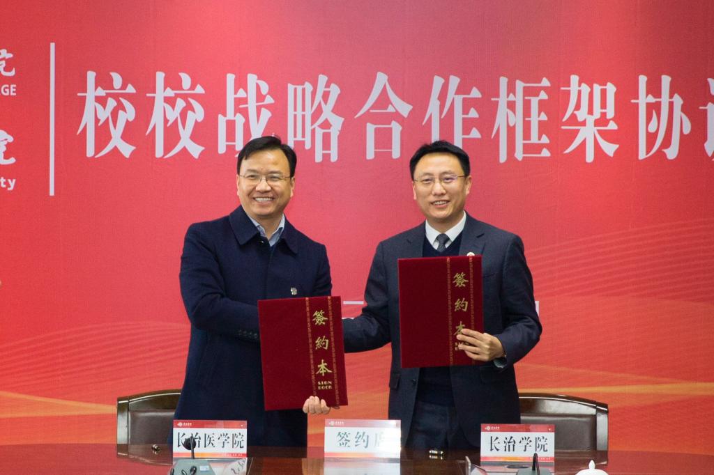 王金胜、曹景川分别代表两校签署了《长治医学院 长治学院战略合作框架协议》