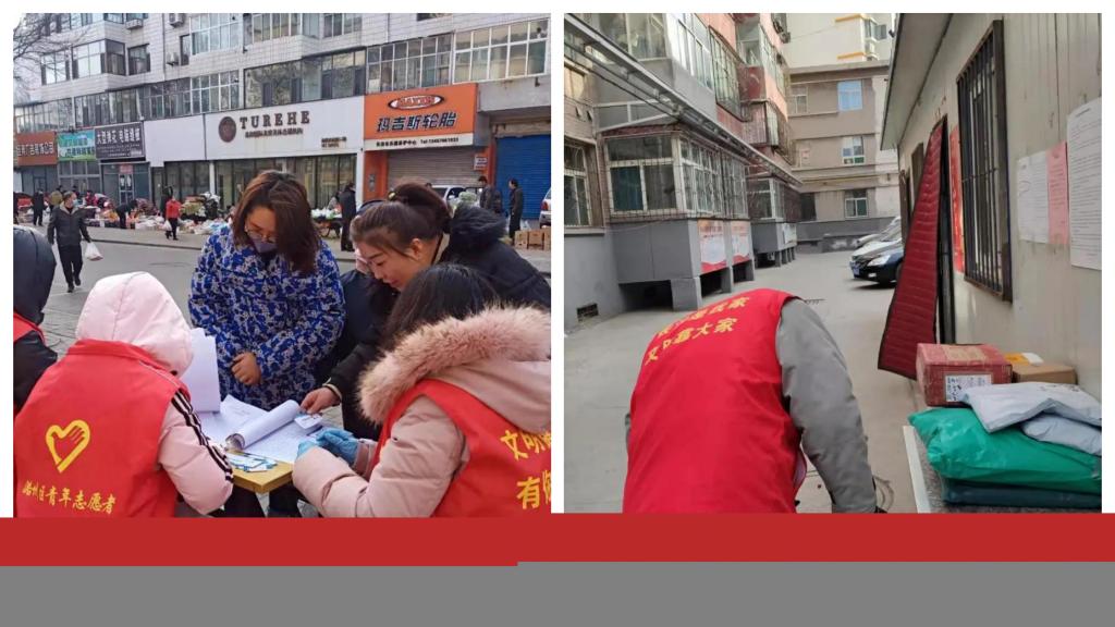 1月12日清晨,凛冽寒风中我校大学生志愿服务队整装待发,在社区工作人员的带领下,奔赴东街、延安南路两个街道14个社区,开展入户排查、卡点登记、防控宣传等志愿服务工作。