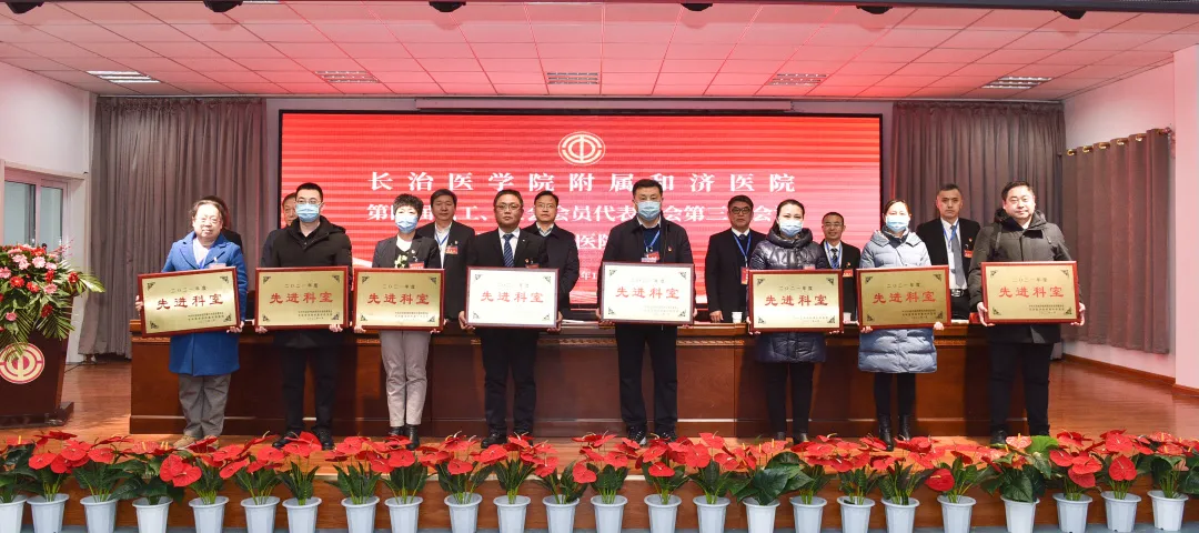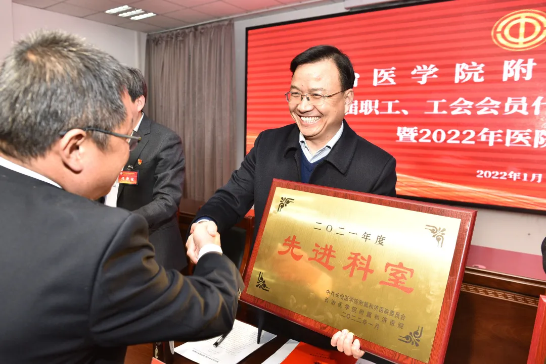 医院纪委书记郭志宏宣读了长医和济党字﹝2022﹞4号、长医和济政字﹝2022﹞4号文件《关于表彰2021年度先进集体和先进个人的决定》,并进行现场颁奖。