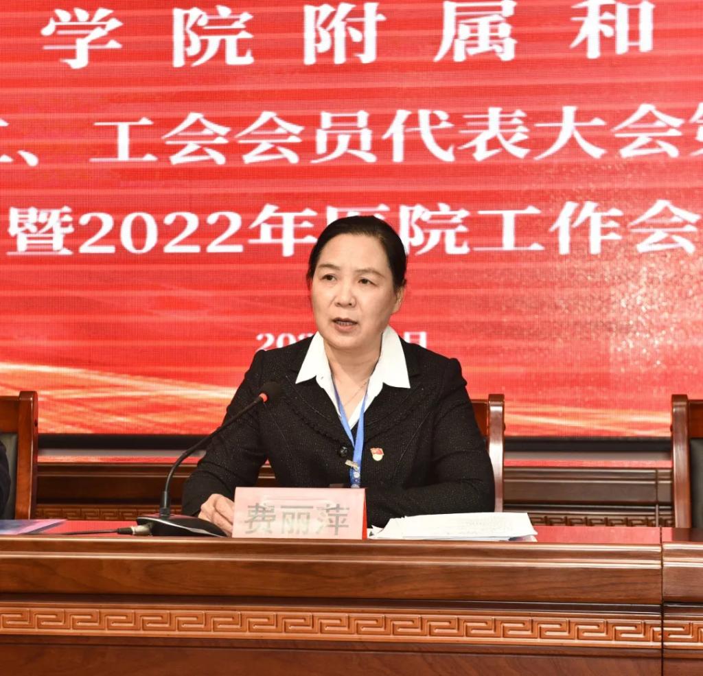 医院党委书记费丽萍致开幕词。她指出,这次大会是全院上下深入学习贯彻习近平新时代中国特色社会主义思想和党的十九届六中全会精神,开启“十四五”发展规划的关键时期召开的一次十分重要的大会。希望我们能够以本次大会为契机,统一思想,凝聚共识,希望各位代表不负所托,以饱满的精神状态和高度的政治自觉履好职、尽好责,为医院的改革发展献计献策。