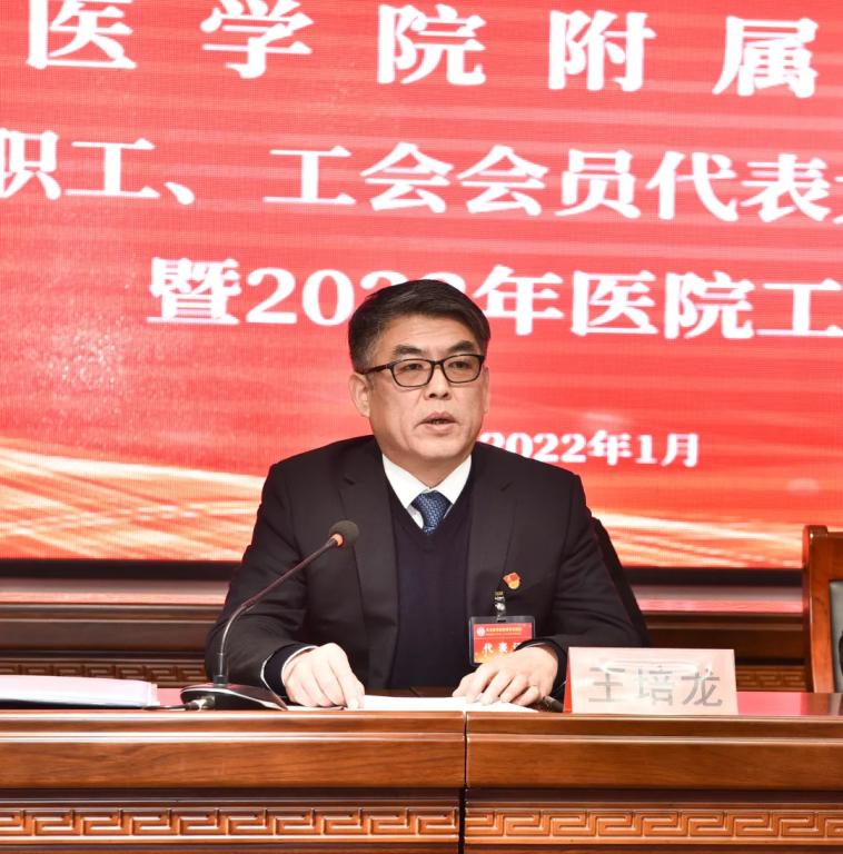 医院党委副书记、院长郝少峰作了题为《把握新机遇 谋求新突破 实现新发展 谱写医院高质量发展新篇章》的工作报告。报告对2021年各项工作进行全面总结和回顾,深入分析了医院面临的挑战与机遇,安排部署2022年工作。他指出,一年来,在学校党政的正确领导下,以加强党的建设为根本保证,以加快现代医院管理制度建设为抓手,以推进内涵建设为途径,努力提高医疗质量和服务能力,医院坚持稳中求进总基调,于危机中育新机,于变局中开新局,圆满完成了各项工作任务。
