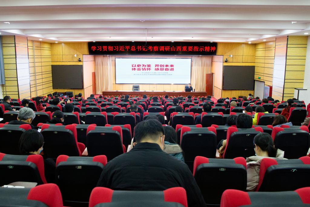 2月26日上午,党委书记李华荣在临床技能中心学术报告厅以“以史为鉴、开创未来,体会情怀、感恩奋进”为主题,从“深刻理解、学懂弄通六中全会精神”“从党的奋斗历程中汲取智慧和力量”“体会为民情怀、感恩奋进新时代”三个方面,为校本部副处级以上干部、所在支部全体党员、联系班级学生代表深入宣讲党的十九届六中全会精神和习近平总书记考察调研山西重要指示精神。宣讲会由党委常委、宣传部部长崔红主持。