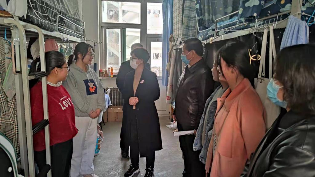 张芳萍带队在校本部对研究生宿舍、北区食堂、北区门卫、南区学生公寓、太行餐厅等重点部位和关键领域的疫情防控工作进行了重点检查,全面细致地检查了食堂就餐、公寓管理、食品卫生、快递摆放消杀、防疫物资供应和服务保障等疫情防控工作落实情况。她以“现场办公会”的形式对疫情防控工作中存在具体问题提出解决方案,并强调指出,各相关部门要高度重视,对照检查防控工作漏洞、堵点,坚持立说立行,有效解决发现的问题。她要求,一要关心学生的诉求,解决学生“急难愁盼”问题。二要引导好学生,按时作息、加强运动,开展校园封闭期间的有益活动。三是要强化责任担当,辅导员要常进宿舍,常到学生身边,和学生在一起,了解实情、发现问题、及时化解。