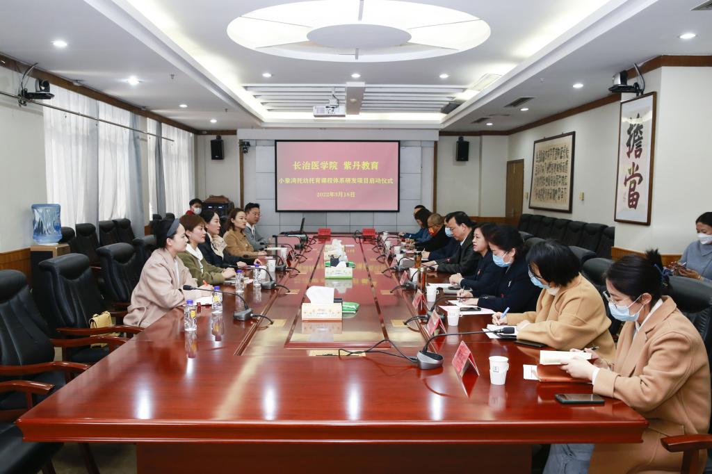 3月18日下午,我校在11层1号会议室举行了与紫丹教育集团小象湾托幼托育课程体系研发项目的启动仪式。校长王金胜、继续教育学院院长来丽娜、医院管理处处长牛庆国,紫丹教育集团董事长党佳佳、托幼托育负责人孙加琴,我校及附属医院儿保、心理、营养、音乐治疗等相关领域专家参加了启动仪式。来丽娜主持了仪式。