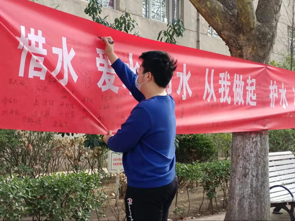 3月23日上午,由校团委主办、校学生会承办的“惜水 爱水 节水 从我做起 ”“护水 净水 保水 人人有责”主题节水周签字活动,在北校区林荫道举办。志愿者们积极宣传节水护水相关知识,向全校学子发出“节约用水 从我做起”的倡议,我校青年学子纷纷驻足签名,营造出了节约用水、科学用水的良好宣传氛围。