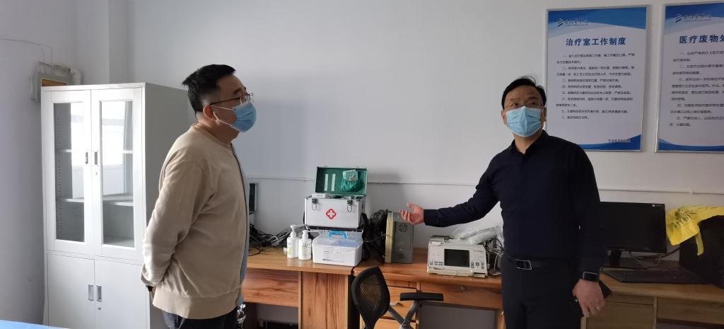 王金胜走进保卫处监控室看望值班人员,并指出监控室室内存在墙皮损坏问题,要及时报修。王金胜还就校医室急救药品的配置、校内理发价格以及水果售卖情况进行了详细了解,并提出具体要求。