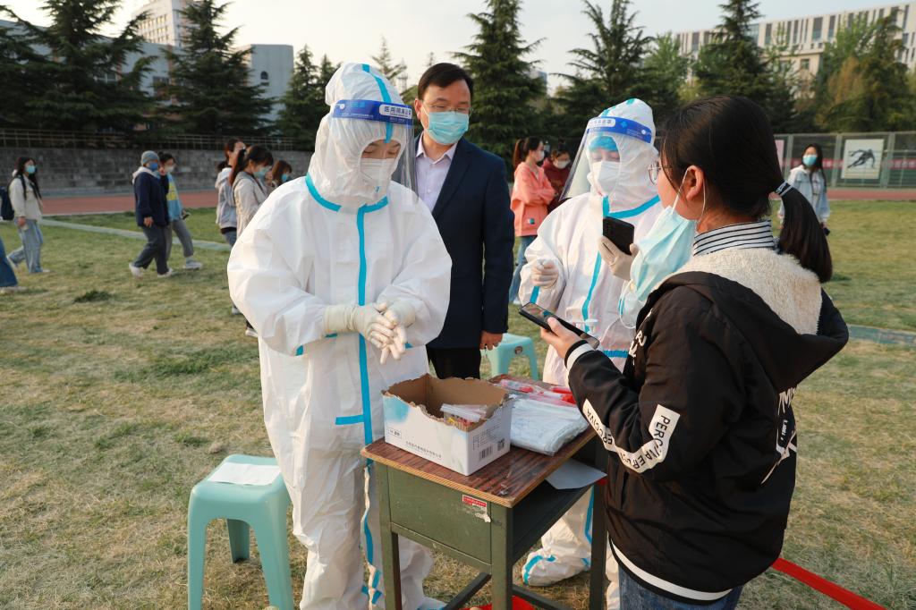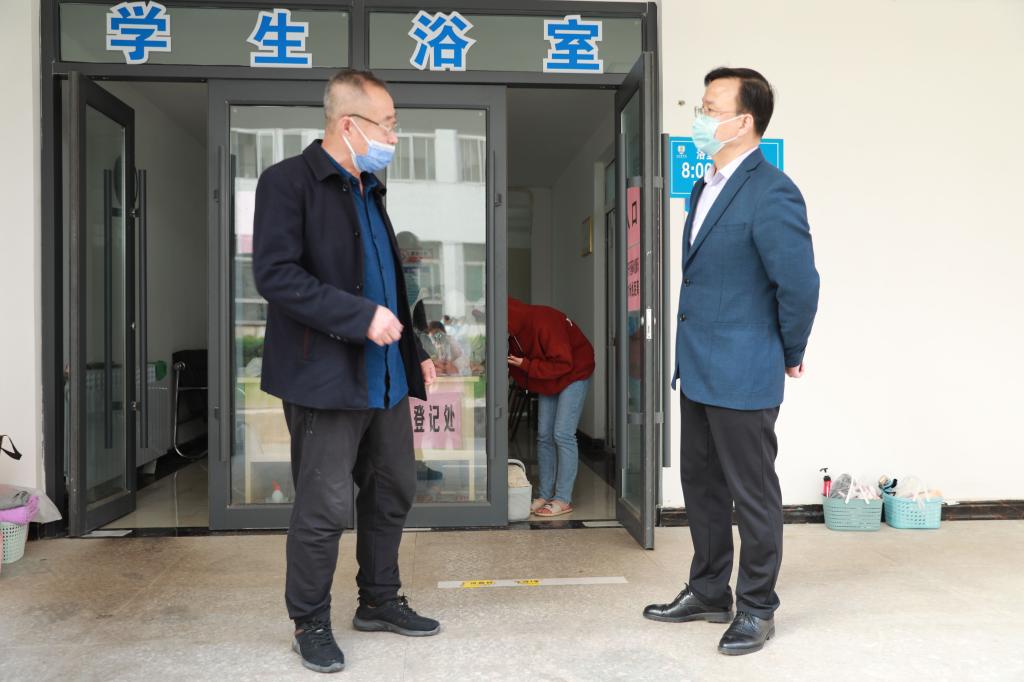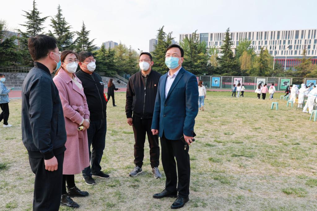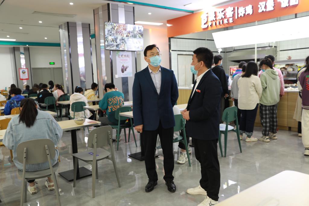 4月18日下午,校长王金胜深入校本部南区,就学校全员核酸检测应急演练、后勤保障供给、疫情防控措施落实情况等重点环节和重点部位进行督查。