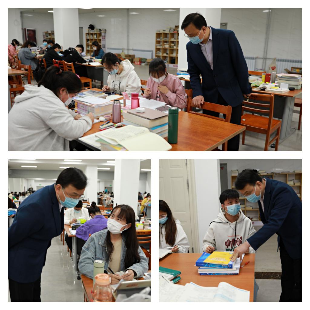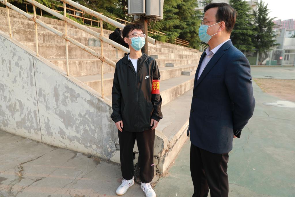 在学生自习室,王金胜仔细了解了学生在全封闭管理期间的生活情况、学习备考情况,他勉励同学们要不负韶华、只争朝夕,坚持就是胜利,同时,他叮嘱同学们要做好自我防护,积极配合做好学校的各项疫情防控措施。