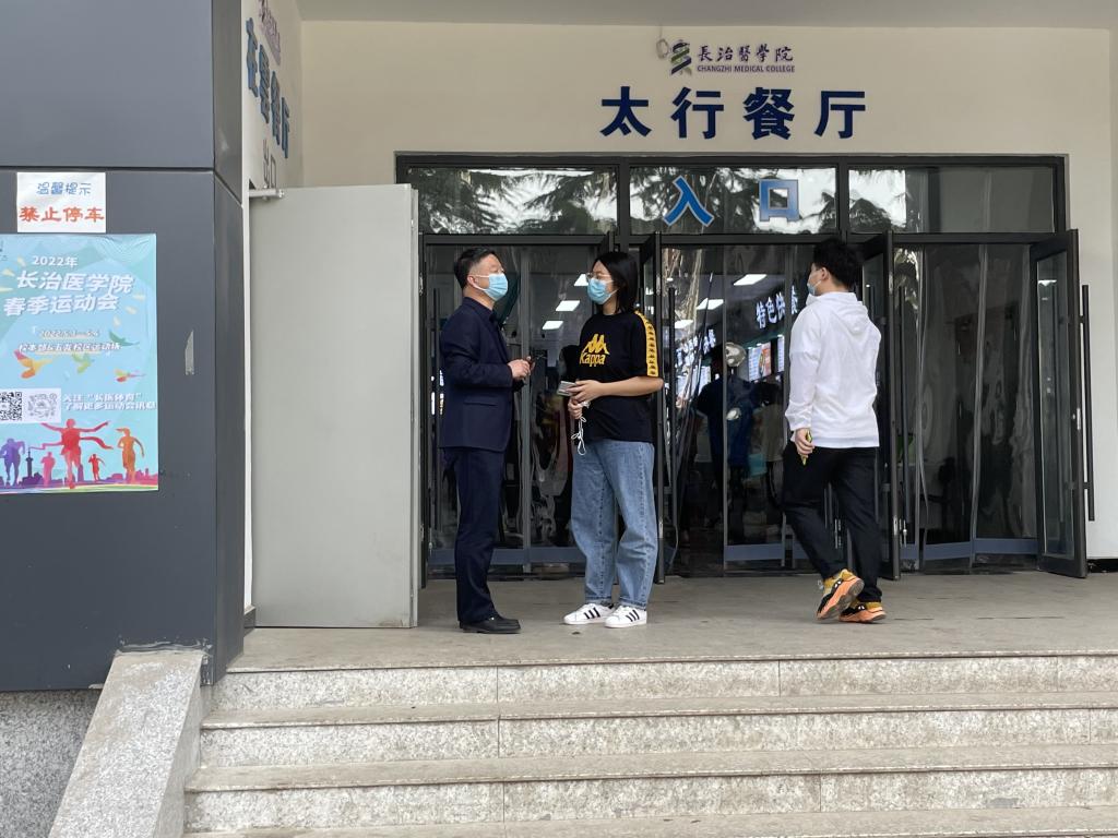 校园封闭管理期间,系部领导和老师走进学生餐厅,与同学们一起排队打饭,共同用餐,叮嘱大家要注意安全、同向就坐,相互避让、小心烫伤;老师们关心地问“盛的饭量够不够,合不合口,能不能吃饱?”对接口腔医学系学生班级的处级干部杜海利,深入同学们中间,充分听取和及时反馈同学们对食堂管理提出的宝贵意见和建议。