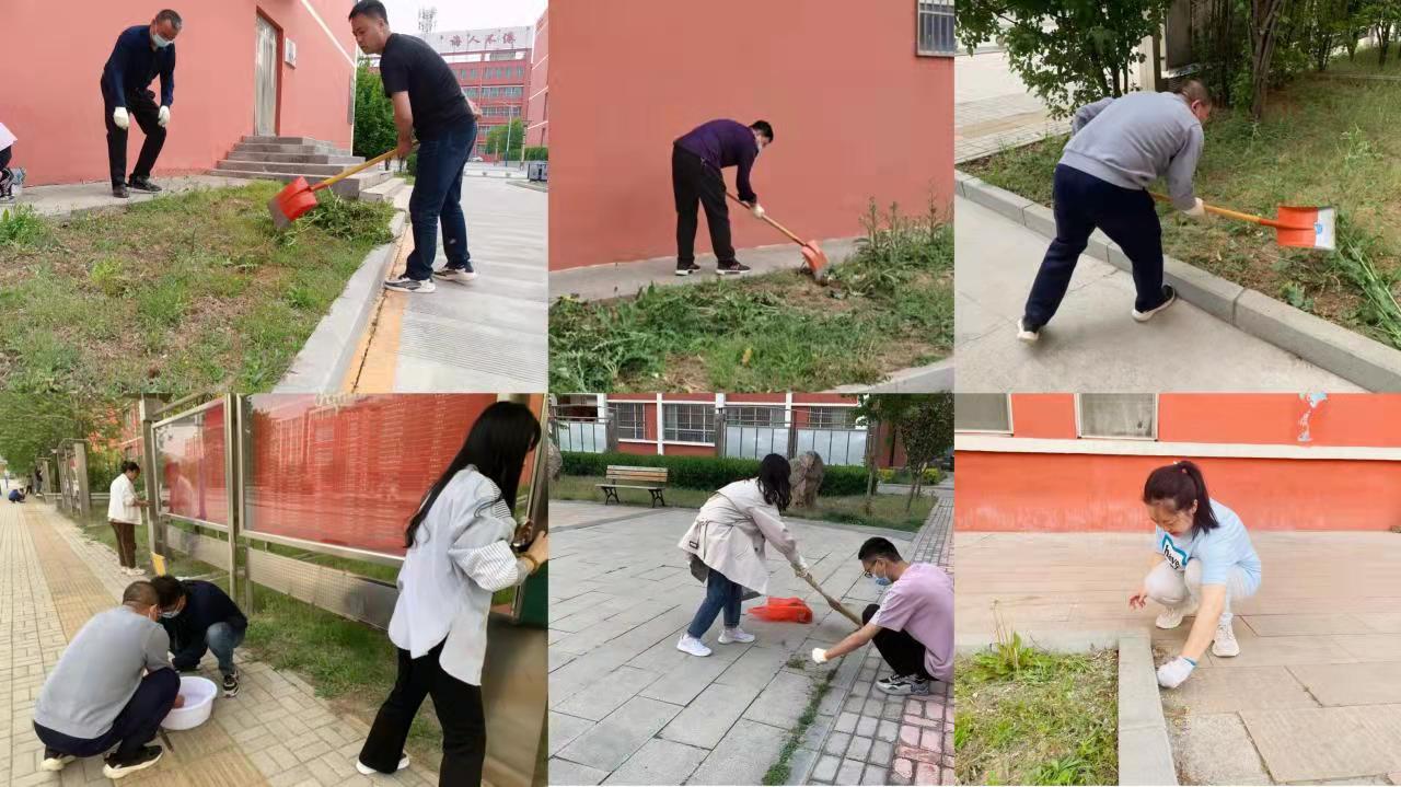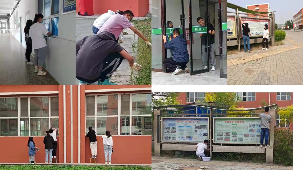 下午四点半,老师和同学们按时集结,经过活动前精心策划和有序安排,党政干部、辅导员和学生们分组到达指定区域,对宣传栏橱窗、广告栏海报、教学楼走廊玻璃、校园卫生死角进行了彻底清理。大家分工协作,提着水桶、拿着抹布、扛着铁锹、拎着灰斗认真清理灰尘、污渍以及胶带痕迹,彻底清除校园卫生死角。党政干部、辅导员老师身先士卒,提最重的水桶,清理最脏的死角;同学们也不甘示弱,你打水来我擦灰,你搬凳来我扫地,都在为美化校园贡献自己的一份力量。校园里处处可见师生共同劳动的场景,最暖心的话语是老师们在劳动的同时,也不忘提醒同学们登高擦灰注意安全。